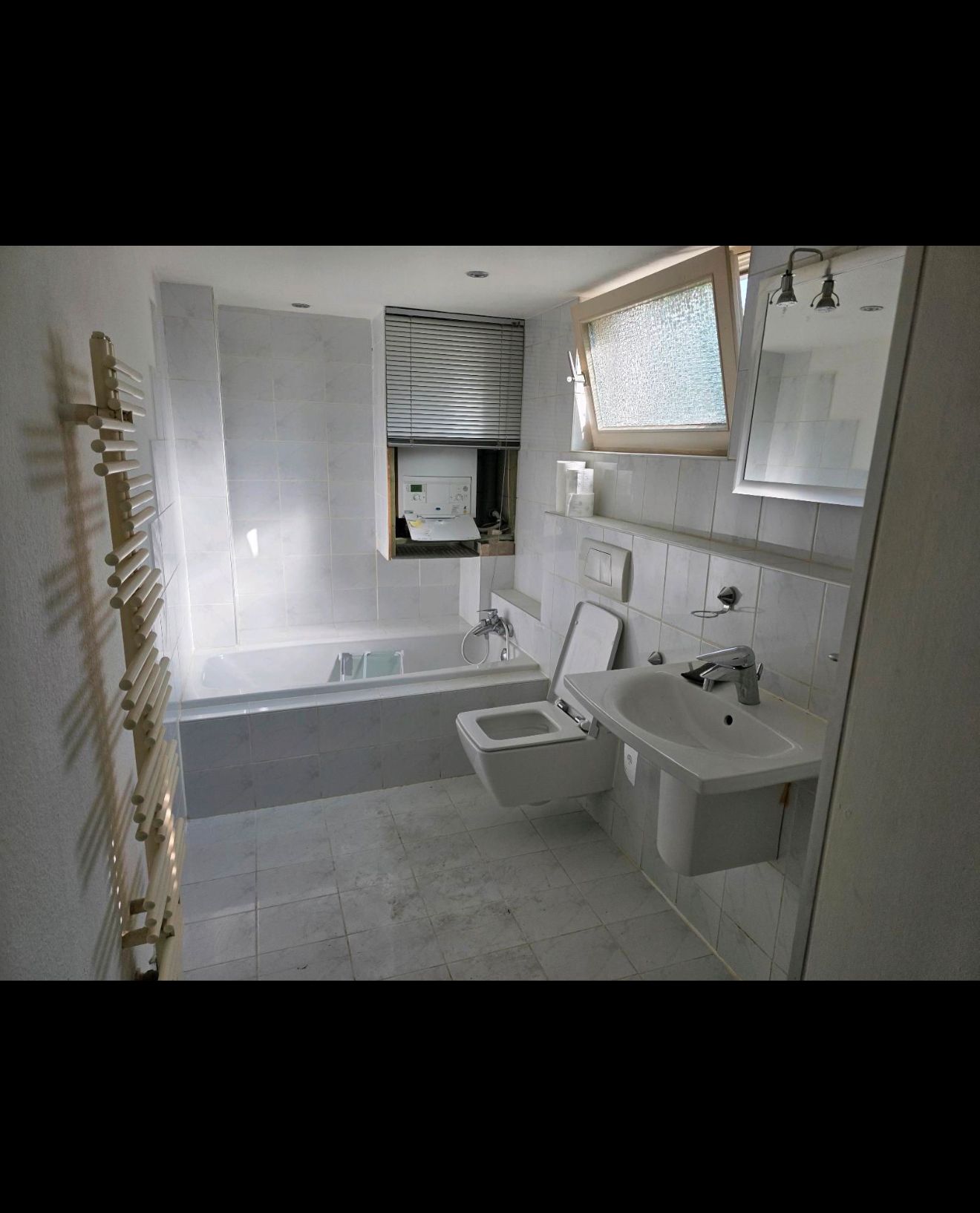 - Ausstattung des Bades Dusche Fenster Badewanne
