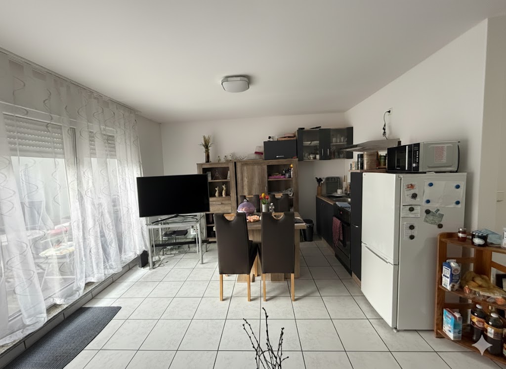 Das Schlafzimmer bietet ausreichend Platz für ein großes Bett und einen Kleiderschrank. Das Badezimmer ist mit modernen Armaturen ausgestattet und verfügt über eine Dusche. Die Küche und das Wohnzimmer sind offen gestaltet und bieten genügend Platz für einen Esstisch und ein gemütliches Sofa. Die Terrasse lädt zum Entspannen im Freien ein. Der Keller bietet zusätzlichen Stauraum für Gegenstände, die nicht täglich benötigt werden.
